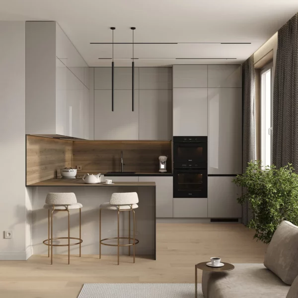 Кухня «Флавио‘24» оснащена фасадами из МДФ с ПВХ покрытием в цвете «Кашемир» и ЛДСП «Тимбер» с декором «Сабиа», что придаёт ей стильный и утончённый облик....