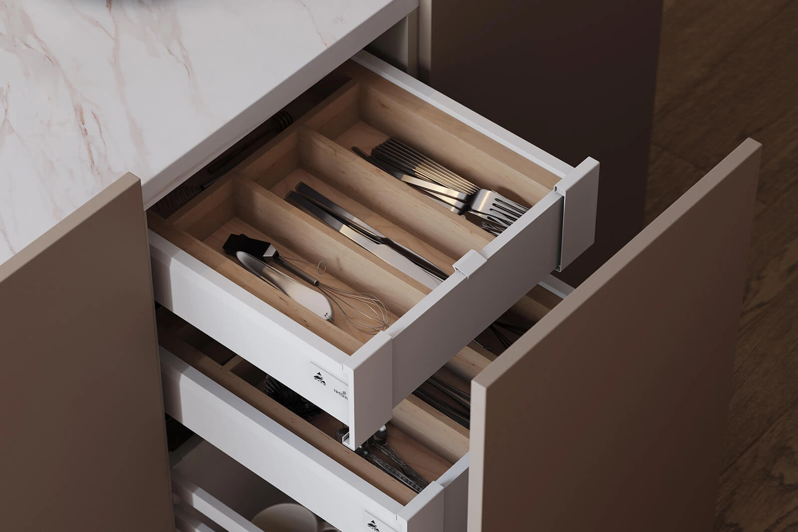 Фабрика ЗОВ изготавливает каждую кухню под заказ по индивидуальному проекту. Мы комплектуем гарнитур инновационной системой зонирования REVEGO, механизмами TIP-ON, выдвижными системами ArciTech и практичными аксессуарами: вкладышем для приборов из массива ольхи и ведром для отходов VS ENVI Single. Наши специалисты бесплатно создадут дизайн вашей будущей кухни. Сейчас действуют выгодные акции и большие скидки.
